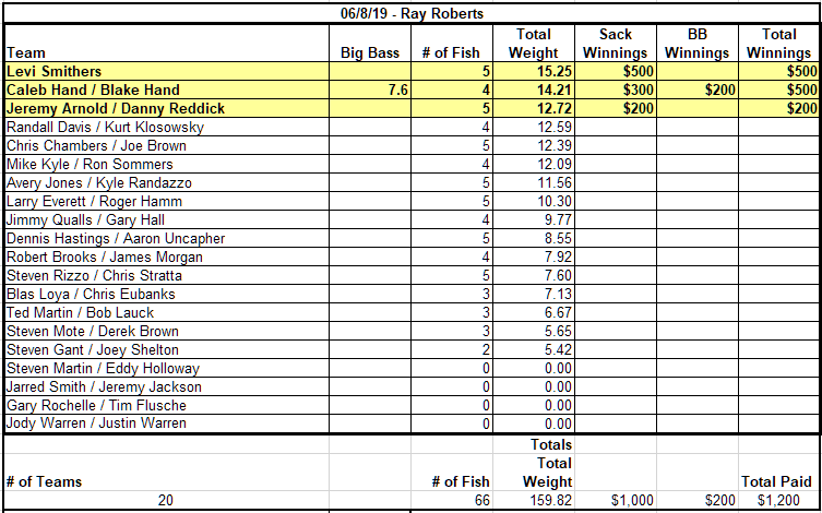 January 19 - Welsh February 24 - Brandy Branch March 23 - Palestine April 14 - Lake O' The Pines May 11 - Palestine June 08 - Ray Roberts July 20 - Winnsboro (Ironman Night Open) August 17 - Texoma (Ironman Night Open) September 28 - Bob Sandlin October 26-27 2019 Classic on Palestine